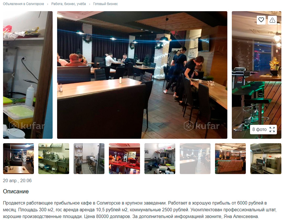 Также среди объявлений о продаже бизнеса обнаружилось и кафе "Янки". Напомним, что открылись "Янки" в январе 2018 года.