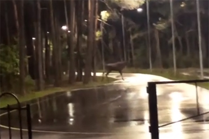 На лыжероллерной трассе в Солигорске был замечен лось. Кадры с лесным гостем выложила в сторис инстаграм @daria_vord. Этот видеоролик уже становится хитом соцсетей.