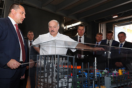 Белорусско-китайское предприятие "Белкалий-Мигао", на котором производят нитрат калия, было построено на промышленной площадке четвертого рудоуправления "Беларуськалия". Здесь Президенту доложили о финансово-хозяйственной деятельности главного производителя калийных удобрений, этапах строительства и первых итогах работы нового завода, особенностях технологического процесса. Во время визита главы государства обсуждались и другие инвестиционные проекты "Беларуськалия".