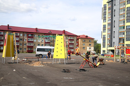 На обновляемом стадионе средней школы №2 г.Солигорска начался монтаж игровых конструкций и малых архитектурных форм.
