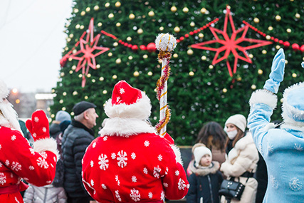 Новогодний сейшн, тир, армрестлинг, фейерверк. Праздничные гуляния у новогодней ёлки в Солигорске продолжаются