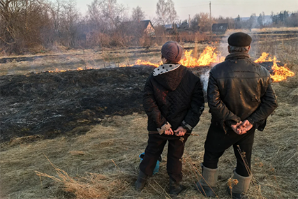 В пол третьего пожар все еще не был ликвидирован. Дым от него было видно над Слуцком. Но это не помешало рыбакам продолжить свое дело - трава горела всего в нескольких метрах от них.