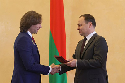 Государственную награду вручили руководителю солигорского ансамбля танца "Сузор'е" Вадиму Матанцеву