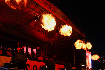 19:00 - торжественная церемония чествования "Славим имя твоё, шахтёрская столица!". А также зрителей ждет концертная программа Заслуженного коллектива Республики Беларусь Президентского оркестра Республики Беларусь "DISCO ORCHESTRA SHOW", танцевальная программа "DANCE OPEN AIR" с участием фрик-шоу двойников, огненное и световое шоу. Завершит программу праздничный фейерверк.