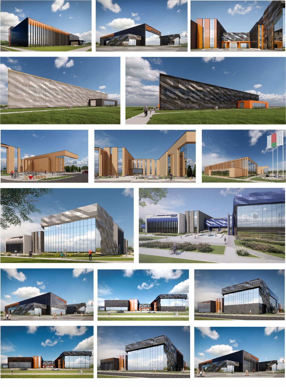 В процессе разработки проекта авторским коллективом организации был проанализирован международный опыт реализации объектов подобного класса и предложены различные варианты планировочных решений, а также принципиальные концепции цветового решения фасадов и интерьеров проектируемого комплекса.