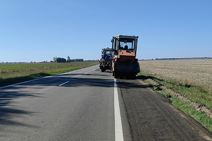 Фотофакт. На дороге Радково - Красная Слобода асфальтируют обочину