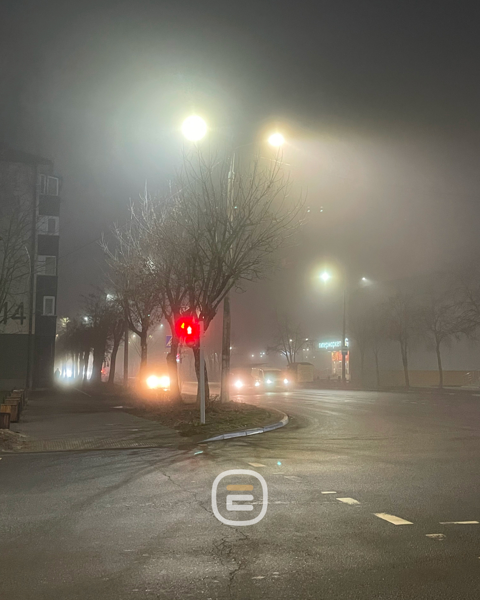 В туманной дымке привычные места Солигорска становятся почти неузнаваемыми.