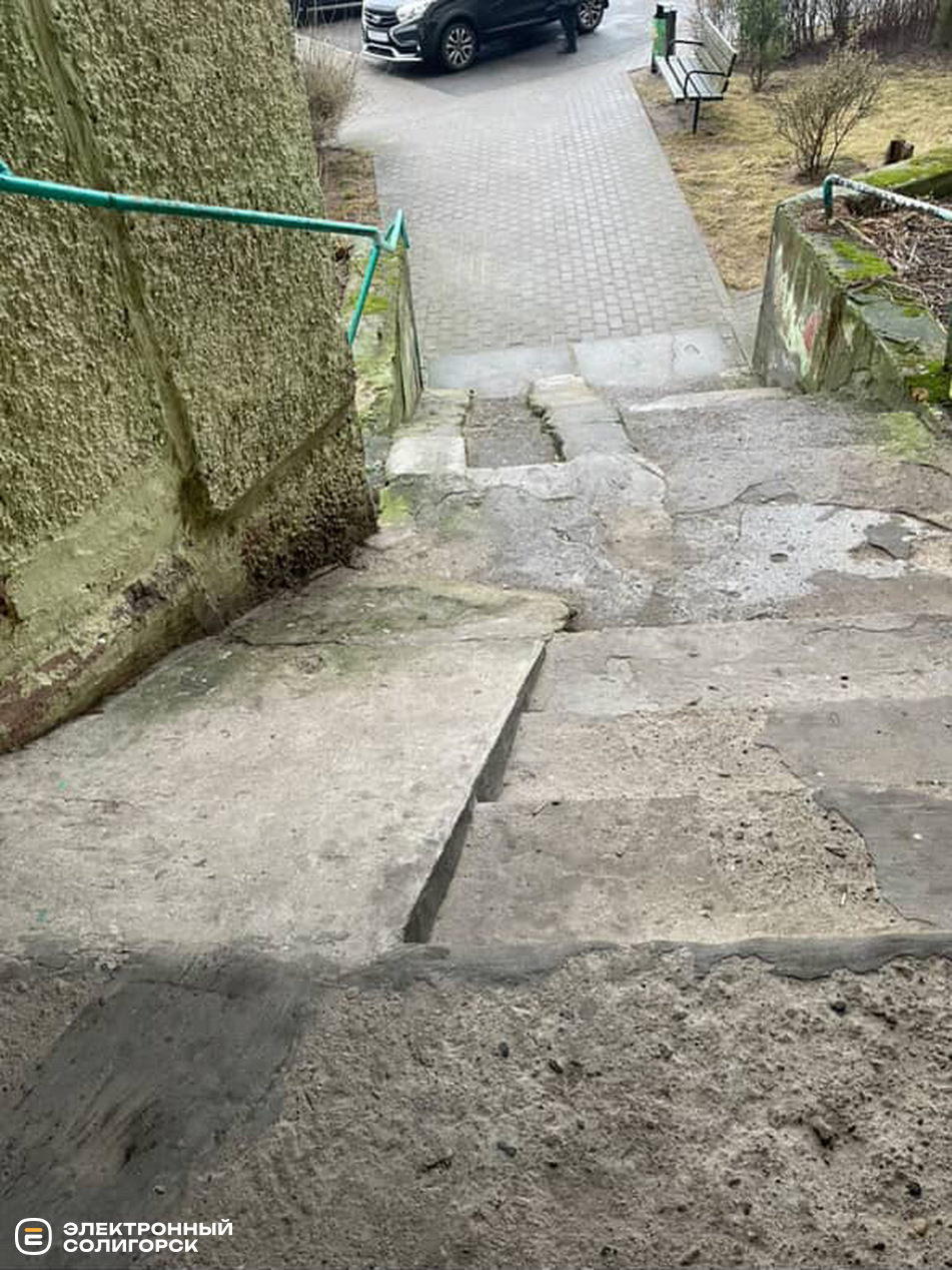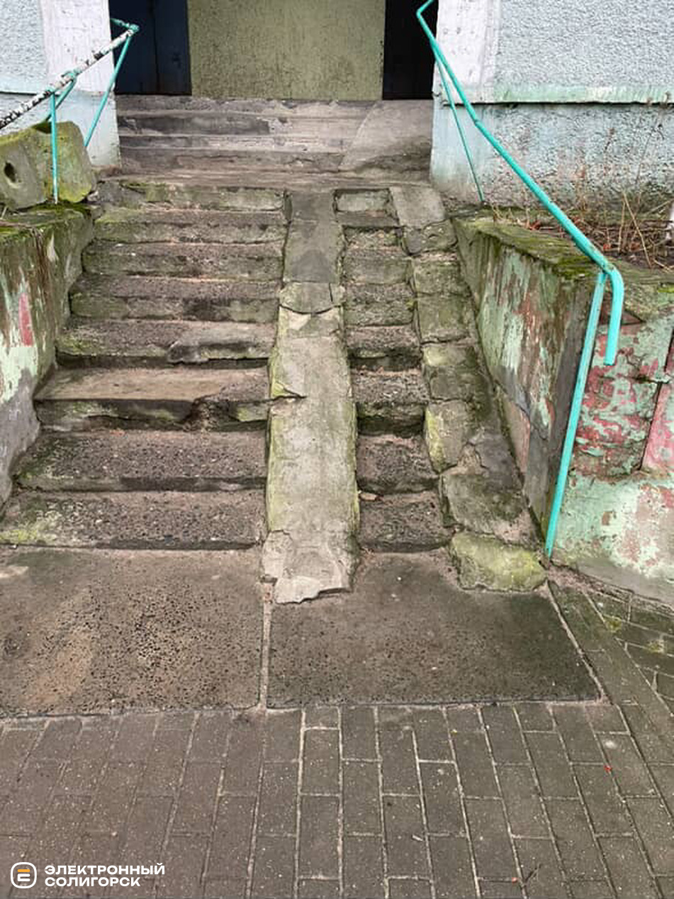 - Здравствуйте. Хочу осветить тему. Это касается не только нашего подъезда, а в целом такая проблема присутствует по всему городу. Октябрьская, 95, подъезд 8. Вечная наша головная боль - пандус. Уже с января жильцы подают заявки на реконструкцию, но всё остаётся без результата. Вся входная группа находится в плачевном состоянии. Мне спуститься с коляской просто травмоопасно в любое время года. Зимой всё превращается каток. Ступени разных размеров, всё скользкое и разбитое, угол наклона пандуса не подходит ни для чего: ни коляску детскую поднять, ни инвалидную.