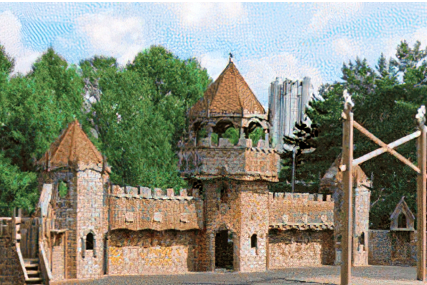 Крепость будет представлять собой комплекс деревянных сооружений для спортивных и развивающих игр.