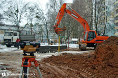 Работы по реконструкции внутридворовых территорий по улице Набережная 4 и 7 продолжаются. Солигорский ДСК выступил генподрядчиком на указанном объекте. Погодные условия немного помешали процессу, но работа кипит. Строители уже подготовили место для стоянки автомобилей.
