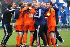 Те солигорчане, которые хотя бы изредка выбираются на стадион "Строитель" посмотреть за игрой "Шахтера" и поболеть за команду не могли не обратить внимание на группу молодых мужчин в синих спортивных костюмах, которые время от времени на красавце-автобусе приезжают поддержать "горняков". Это футболисты ФК "Слуцк", выкраивающие время между матчами Первой лиги и тренировками. Совсем скоро эти парни приедут на хорошо знакомый стадион уже не в качестве зрителей, а как оппоненты "Шахтера". 16 ноября ФК "Слуцк" в матче с "Витебском" досрочно оформил чемпионство в Первой лиге и пробился в Высшую. На гостевой поединок ХК "Шахтер" против столичной "Юности" пришли не только рядовые болельщики. На секторе "Шахтёра" был замечен губернатор Минской области Семён Шапиро (на фото – справа), которому болельщики нашей команды вручили клубный шарф.