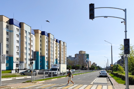 На улице Судиловского на один пешеходный переход стало меньше, а другой был оборудован светофором, работающим по требованию. Посмотрели, как ведутся работы.