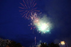 Серию торжественных мероприятий, которыми в центре Солигорска был шумно отмечен профессиональный праздник работников химической промышленности, увенчали залпы салюта над городом калийщиков.