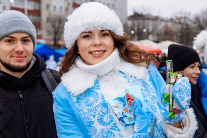 Парад Дедов Морозов и Снегурок прошел в Солигорске. Зажгли главную ёлку и устроили танцы на площади